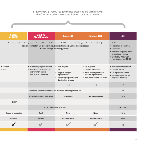 SITE PROJECTS: Follow site governance processes and alignment with ePMO model is generally not a requirement, but is recommended