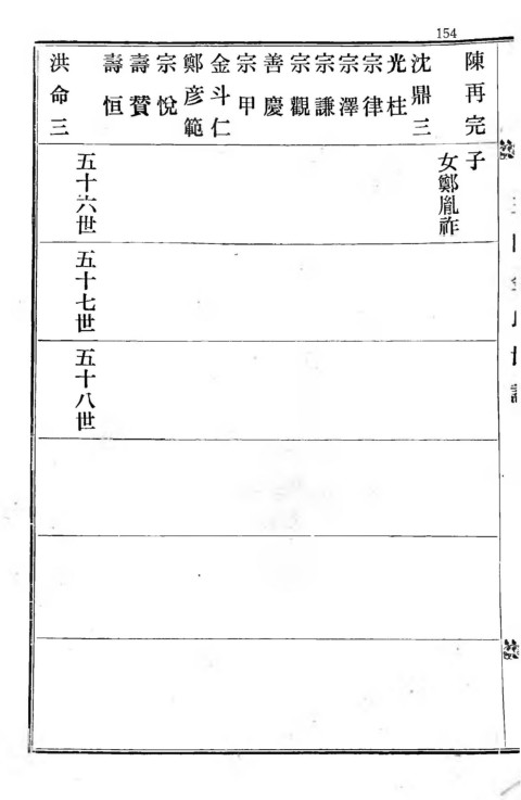 154 洪 壽壽宗鄭金宗善宗宗宗宗光沈 陳 命 恒贊脫診斗甲慶觀»澤律柱辯 2 三 範仁 三 完 五 女 子 써 十 鄭 大 ) a 世 ft 五 1 1 十 1 七 世 J 五 十 1 八 世 1 • ♦ 餘 1.----------------------------------------------------------------------------------------------1 1