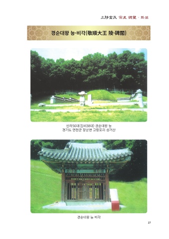 三陟金氏 宗史 總覽·화보 경순대왕 능·비각(敬順大王 陵·碑閣) 신라56대(김씨38대) 경순대왕 능 경기도 연천군 장남면 고랑포리 성거산 경순대왕 능 비각 27