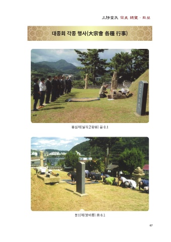 三陟金氏 宗史 總覽·화보 대종회 각종 행사(大宗會 各種 行事) 봉심제(실직군왕릉) 음·8.1 봉심제(왕비릉) 음·8.1 67