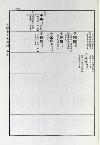 譜 生八진 :朱 二 진 冬月진 二冬二