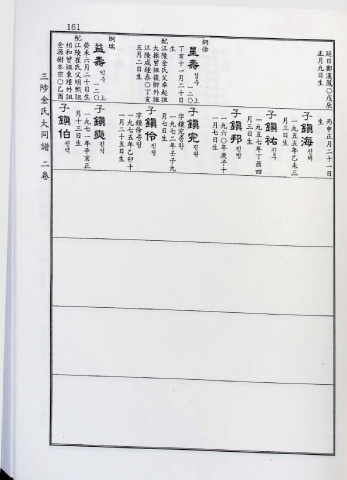 譜     진    生    年 辛  진   五 日  年 乙  령  진     年  완  진    生  年   진       七 年  징   生    五 年  진   二