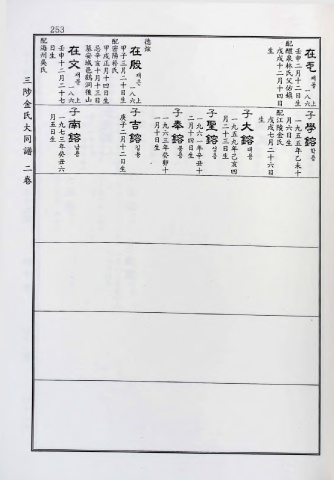 2 5 3 酉己 酉己 德 西? 患抬在舞義*在属 生?醫在 望 十文冬亳点变彳殷 韋第g춘 i 잼 SJ+ 2 쟁 tjl 재 二 _P 洞± 四 十一V ,窟 工 —돌 十八後三日 日八 四錮百; •______七六上巴日生 生六上____________________________________L、量尴上 日—子 由子 子一子口 子 配 子 |g南 季吉戸奉获聖員大生麓旣學 生鸿 鸣 驛彎詳臂효縉 彦钱聲 G 용 癸 용生辛 용生弓 용 十 2 1 第 용 • ■ •