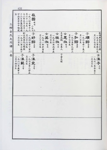 譜 生年父日年호 日年 영 年 계雯혜生年 홍 年 순 日年父