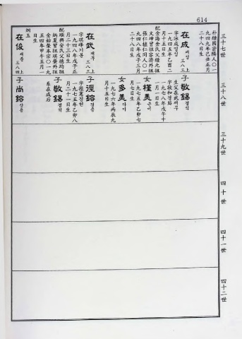 샐 甲 午 本 宗 祖 琪 氏 父 三 日 八 年 기 日 生 仁 * 同 戊 祖 容 父 鍾 生 五 年 성 生 己 陽 世