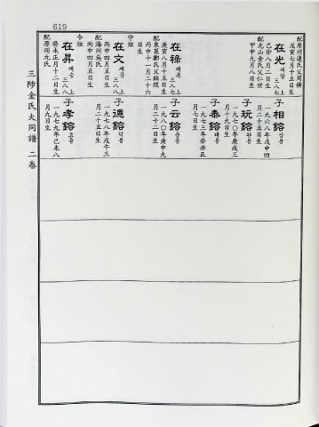 譜 年 효 N 年 덕 日年 운 年 태 生年 완 日年 상
