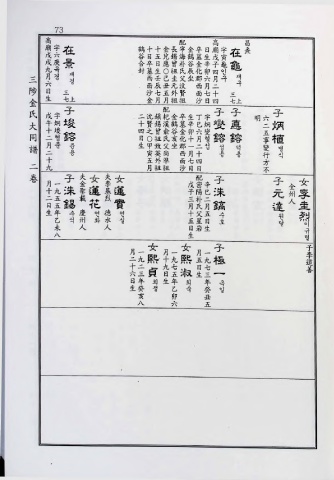氏 戊 字 二 沈 鎭 配 杞 金 卒 生 丁 字 子 子 明 六 子