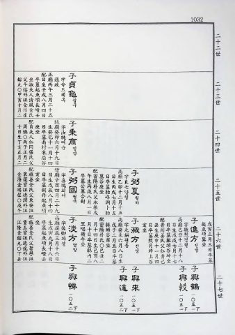 九 逸 父 项 月 月 경 담 坐 卒 生 。 坐 月 六 동 전 月 申 父 頭 七 二 렬 진 坐 三