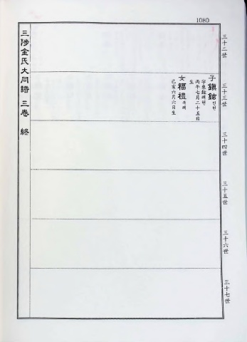 1080 =! 湖 剑 叩 치 同 女 모 己 生 丙 字 譜 亥 福 午 來 鎮 六 七 鉉 月 禮 月 래 鉱 三 六 윽 二 현 진 卷 日 生 레 十 五 현 日 終 —