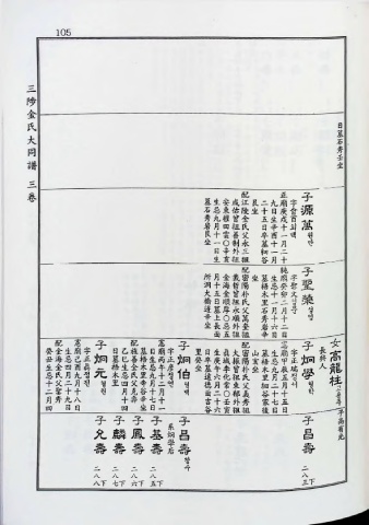 癸 金 生 廟 字 日 乙 旌 日 墓 廟 字 里 日 生 眞 大 密 山 墓 生 廟 字 長