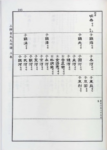 245 炯 明 得 壽 명 수 绘 子 子 子 子 鎮 鎮 鎮 鎮 涌 澤 元 海 진 진 진 진 , 용 택 원 해 . 子子子子子子女女女子子子 子 鐵武銀聖京永朴金昔鍾圭圖 泰 河河河河河河項寶正河河河 河 철 무은 성경 영 榮憲南 종규도 태 하 하 하 하 하 하 학 c촘T 석 하 하 하 하 병 제 정 영 헌 남________________________________ 子子子 東責東 烈國益 동 동 동 열 국 익 生 辛 亥 六 月 二 十 七 日