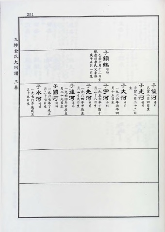 三 陟 金 配 ?- 眞 氏 庚 慶 乙 m 午 州 丑 室 大 正 李 十 餐 鳥 同 月 氏 父 月 진 - 十 학 譜 日 圭 二 生 壽 日 三 生 卷 — 口 子 日 子 月-고月一子月一子 月一子生壬子己子 。五水 츠五 國 二九後 亍九先 ;九 宇 十冬大 寅 光 3俊 1 昔吉 河:^河 Xs河 ts河 工%河 吉袞河 戸河」 河 生年 수 日年 극 日年 후日牟 선日牟 우 生年 대 드 콸四 즈 庚 하 生 丁 하 申 하 生 申 하 生 亍 하 右 하 十 하 日 하