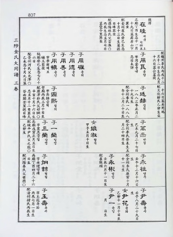 父 月걸 삼 일 日 랑 生 未 十 만