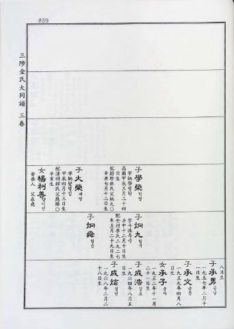 859 己 女 子 酉己高 子 安 辛蔚日廟字二* 岳 楊 辛清甲字 大 꾜珍生 甲 炳 學 亥州辰M 人 利 生韓四燮 榮 議雪榮 父 善 대 在 양 영 十父 月 학 학 堯 이 二炳 二 형 선 子 年擊壬字子 炯 舜 五州申土火冋 혛 九 十二月 수 형 九本十 구 子 -子日-子二一女日-? 一 - 承 日 九 男 丕成生々成十九咅〈生九承 生 五 K■炫盲浩日芝子凌文 七 年 승 年 성 年 성生年 승 年 승 二 남 二현 八호 十자 四문 月 十