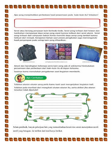 Selain pembatik, banyak pekerjaan lain yang memanfaatkan kreativitas untuk menciptakan motif- motif yang beragam. Ini terlihat dari hasil karya berikut.