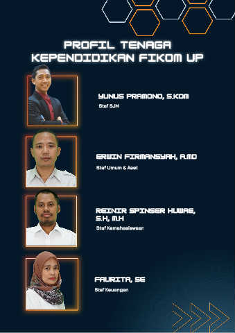 YUNUS PRAMONO, S.KOM Staf SJM ERWIN FIRMANSYAH, A.MD Staf Umum & Aset REINIR SPINSER HUWAE, S.H, M.H Staf Kemahasiswaan FAURITA, SE Staf Keuangan