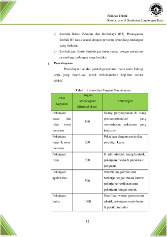 Tabel 1.2 Jenis dan Tingkat Pencahayaan