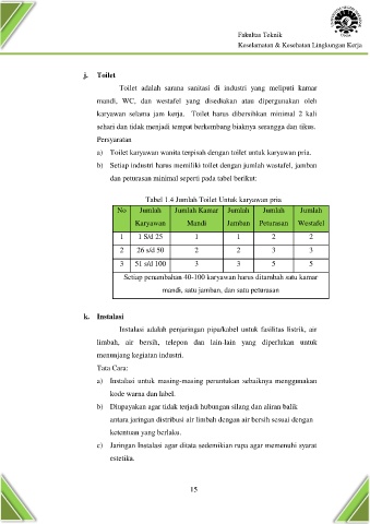 b) Setiap industri harus memiliki toilet dengan jumlah wastafel, jamban