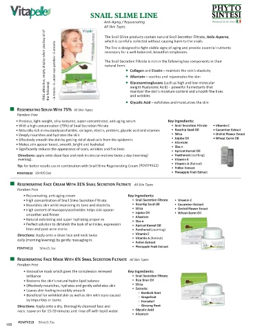 • High concentra on of Snail Slime Secre on Filtrate • •