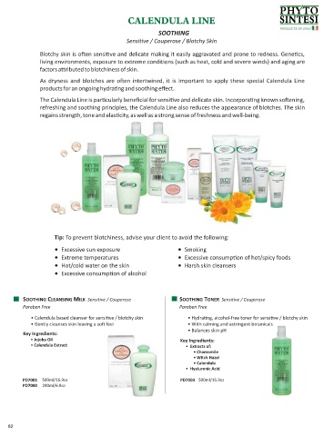 refreshing and soothing principles, the Calendula Line also reduces the appearance of blotches. The skin
