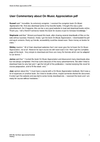 Janice said that " I hunted the book On Music Appreciation and discovered many downloads sites