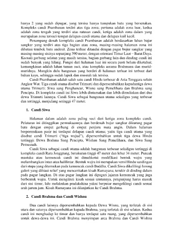 Kompleks candi Prambanan terdiri atas tiga zona; pertama adalah zona luar, kedua