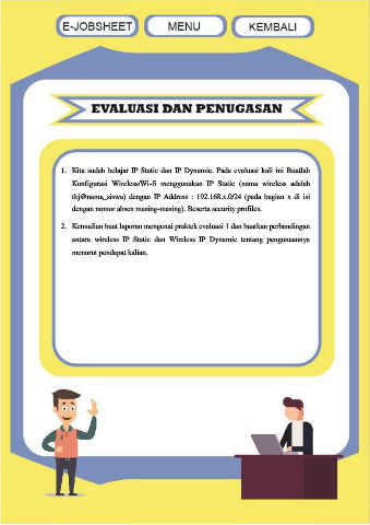 1. Kita sudah belajar IP Static dan IP Dynamic. Pada evaluasi kali ini Buatlah