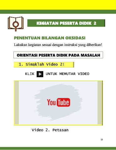 KEGIATAN PESERTA DIDIK 2 PENENTUAN BILANGAN OKSIDASI Lakukan kegiatan sesuai dengan instruksi yang diberikan! ORIENTASI PESERTA DIDIK PADA MASALAH 1. Simaklah Video 2! KLIK UNTUK MEMUTAR VIDEO Video 2. Petasan 23