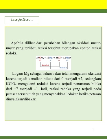 dari +7 menjadi –1. Jadi, reaksi redoks yang terjadi pada