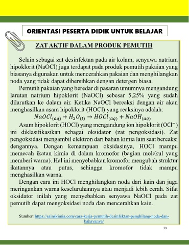 oksidator inilah yang menyebabkan senyawa NaOCl pada zat