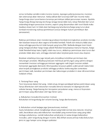 harga-harga (harga barang dan harga tenaga kerja) tidak kaku tetapi fleksibel dan turun