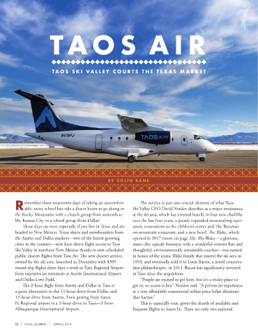 public charter flights from Taos Air. The new charter service, in honor of the iconic Blake family that started the ski area in