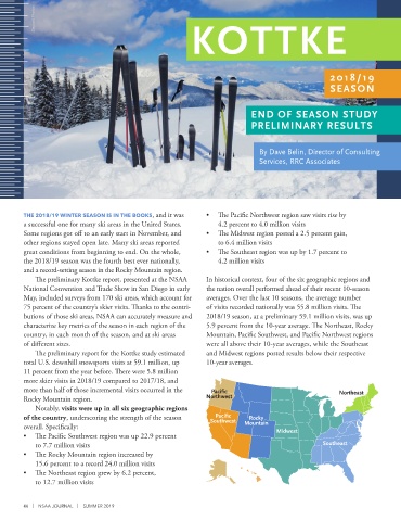 butions of those ski areas, NSAA can accurately measure and 2018/19 season, at a preliminary 59.1 million visits, was up
