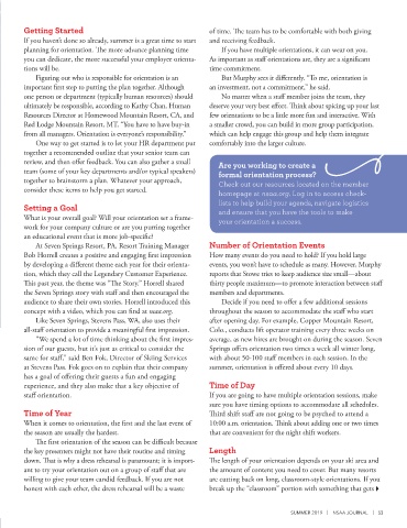 down. That is why a dress rehearsal is paramount; it is import- The length of your orientation depends on your ski area and