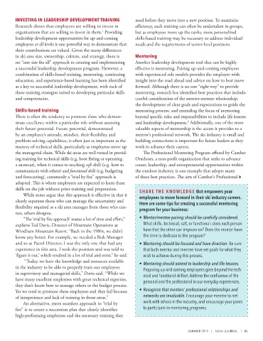 the managerial chain. While ski areas are well-versed in provid- The Professional Mentoring Program offered by Camber