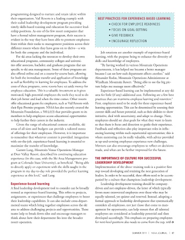 their organization. Vail Resorts is a leading example with BEST PRACTICES FOR EXPERIENCE-BASED LEARNING