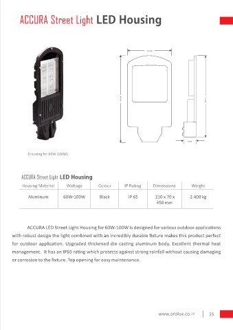 ACCURA LED Street Light Housing for 60W-100W is designed for various outdoor applica ons