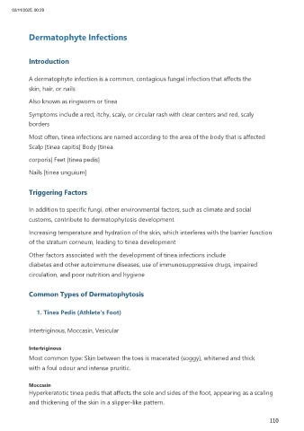 Most common type: Skin between the toes is macerated (soggy), whitened and thick