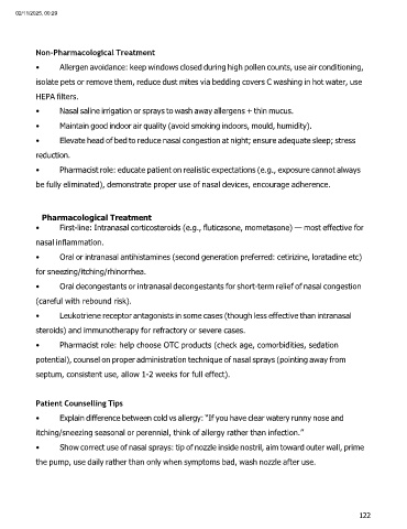 be fully eliminated), demonstrate proper use of nasal devices, encourage adherence.
