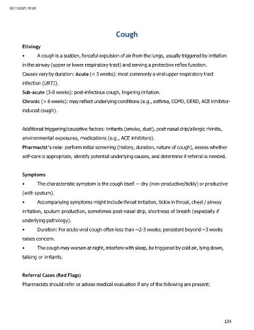 Pharmacist’s role: perform initial screening (history, duration, nature of cough), assess whether