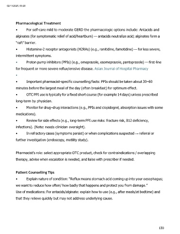 • Important pharmacist-specific counselling/facts: PPIs should be taken about 30–60