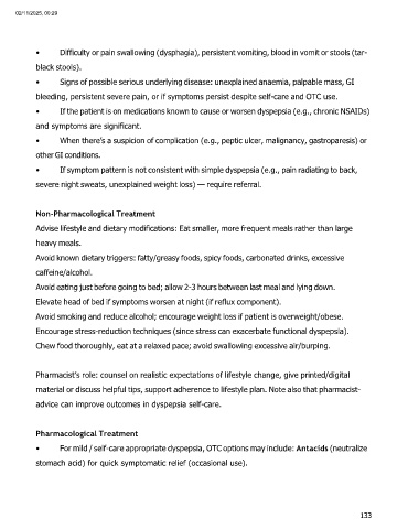 • If symptom pattern is not consistent with simple dyspepsia (e.g., pain radiating to back,