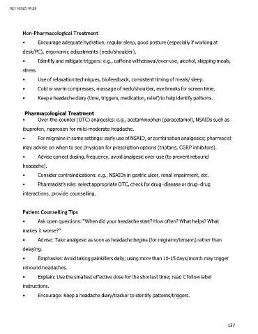 • Advise: Take analgesic as soon as headache begins (for migraine/tension) rather than