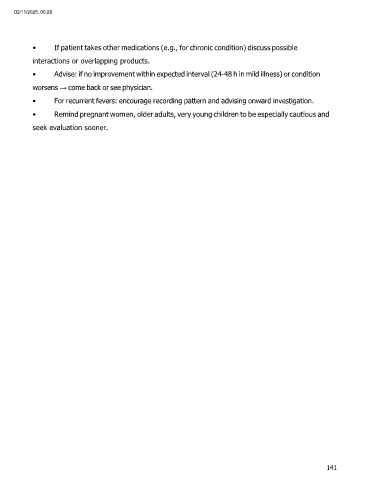 • Advise: if no improvement within expected interval (24-48 h in mild illness) or condition