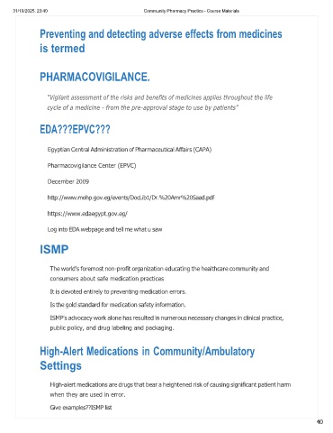 31/10/2025, 23:40 Community Pharmacy Practice - Course Materials