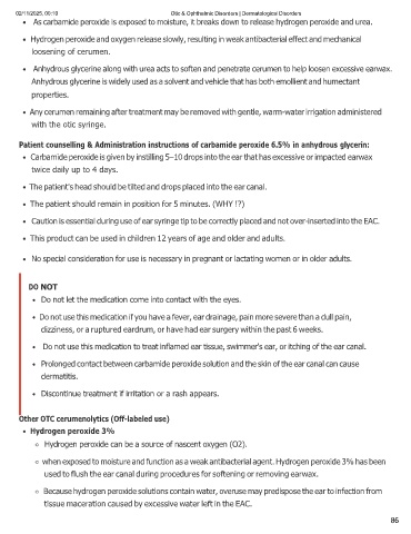 Patient counselling & Administration instructions of carbamide peroxide 6.5% in anhydrous glycerin: