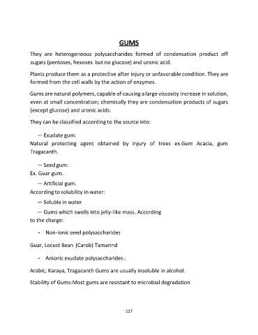 Gums are natural polymers, capable of causing a large viscosity increase in solution,