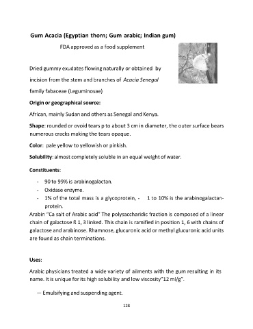Arabin “Ca salt of Arabic acid” The polysaccharidic fraction is composed of a linear