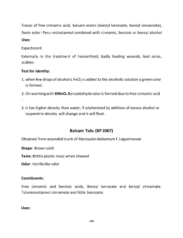 Obtained from wounded trunk of Myroxylon balsamum f. Leguminosae