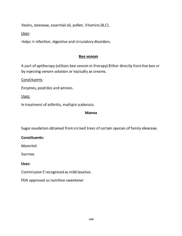 A part of apitherapy (utilizes bee venom in therapy) Either directly from live bee or